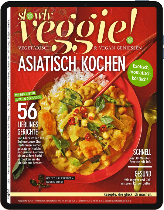 Das Magazin slowly veggie! bietet kreative, alltagstaugliche Rezepte mit einfachen Zutaten – ganz ohne Fleisch. Im Mittelpunkt stehen Genuss, Spaß am Kochen und ein gesunder, nachhaltiger Lifestyle.
