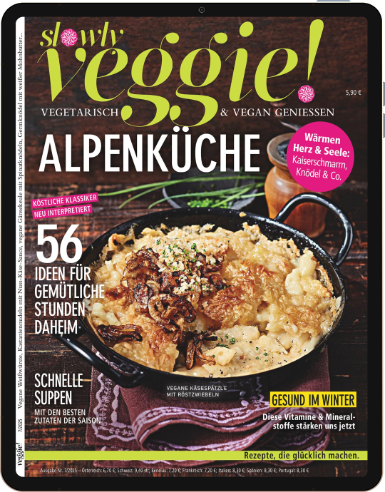 Das Magazin slowly veggie! bietet kreative, alltagstaugliche Rezepte mit einfachen Zutaten – ganz ohne Fleisch. Im Mittelpunkt stehen Genuss, Spaß am Kochen und ein gesunder, nachhaltiger Lifestyle.